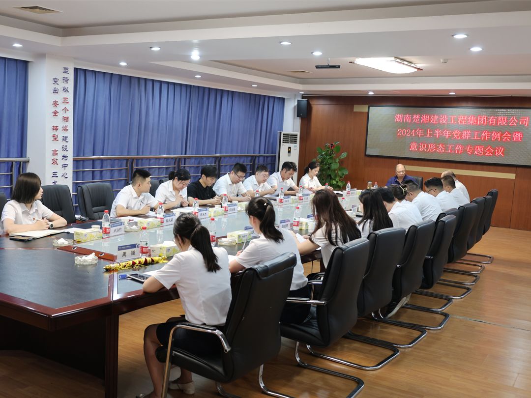 8月21日,楚湘建工集團2024年上半年黨群工作例會暨意識形態工作專題會召開,黨委書記、董事長聶秋洪,紀委書記、工會主席陳洪鵠,所屬各黨總支書記、綜合部負責人,黨群工作部全體人員等參會。